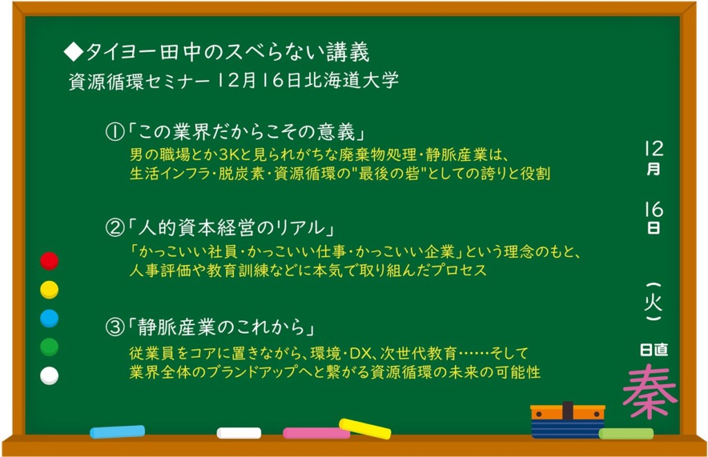 田中「よくぞ聞いてくれました。12月16日に札幌でセミナーがありまして!」