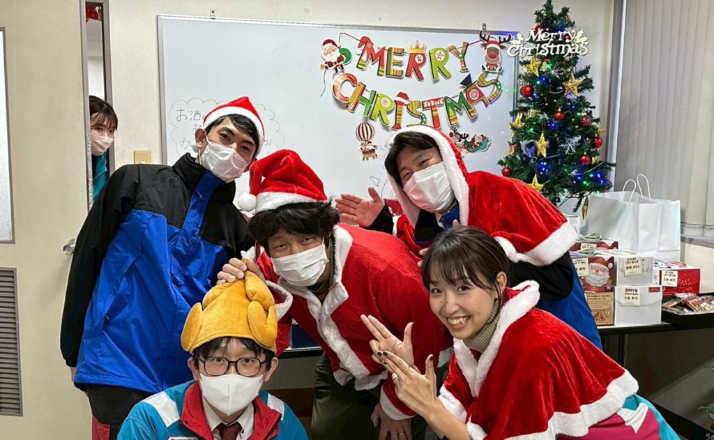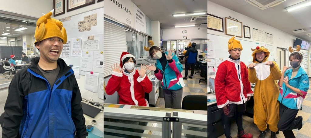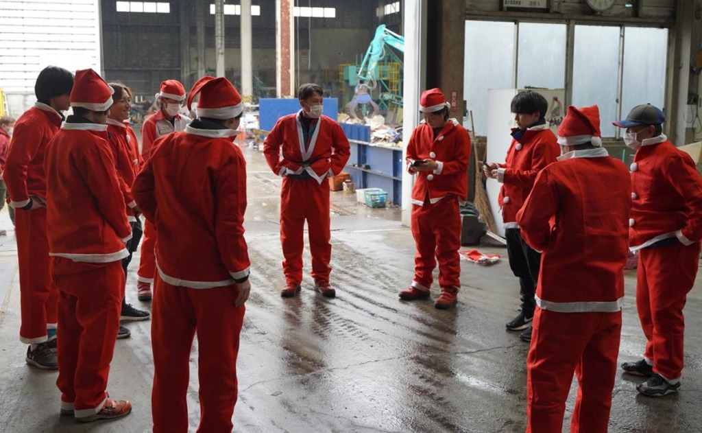 弊社では毎年、イブの夜はサンタ姿で収集へレッツゴー!