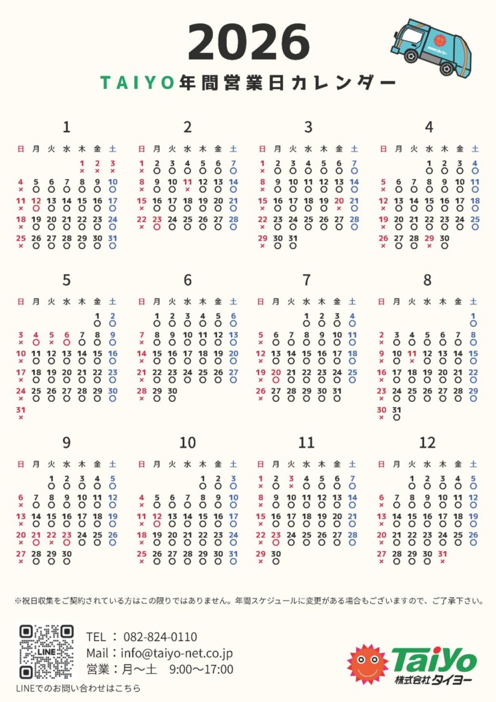 ということで、こちらにご用意させていただいたのが2026年の年間カレンダーとなります。